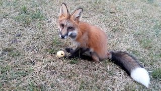 Лиса играет с яблоками
