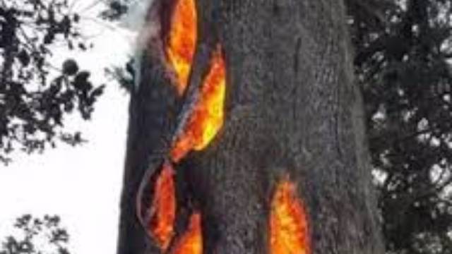 Во время лесных пожаров в Калифорнии, дерево загорелось изнутри