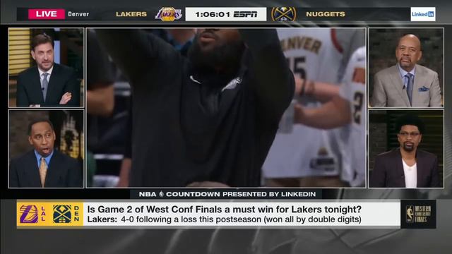 NBA Countdown's Stephen A. Smith and Jalen Rose discuss the ramifications of Game 2 for the Los Angeles Lakers if they were to lose Game 2 of the Western Conference Finals against the Denver Nuggets. ☑️ Subscribe to ESPN+: https://plus.espn.com/ 📱Get the ESPN App: http://www.espn.com/espn/apps/espn 🏀 Subscribe to NBA on ESPN on YouTube: http://bit.ly/2yxs3Og ☑️Subscribe to ESPN on YouTube: http://es.pn/SUBSCRIBEtoYOUTUBE ☑️Watch ESPN on YouTube TV: http://es.pn/YouTubeTV