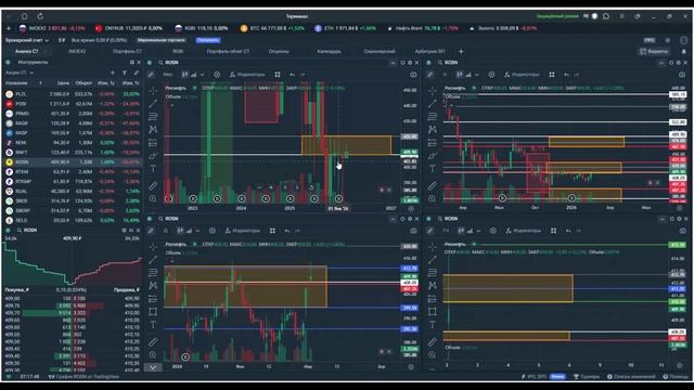 🕯Индексы и рынки — Долгосрок: удивительная устойчивость — третий месяц подряд индексы идут вверх, хотя заветная вершина в 2840 пунктов так и осталась не взятой — Среднесрок: неделя завершается выше предыдущей свечи — рубеж в 2800 пунктов наконец преодолён — Краткосрок: закрыли день выше предыдущего, торги идут выше зон 2785–2715 и 2765–2779, над экватором диапазона 2501–3015. Однако на графиках по-прежнему зияют незакрытые гэпы: 2798, 2770, 2701 и 2652. 📈Покупка Роснефти по месяцам 📈 Новости торгов и инфраструктуры Московская биржа обновляет базы расчёта индексов акций, вступающие в силу с 20 марта, и расширяет число БПИФ, которыми можно торговать даже в выходные. СПБ Биржа напоминает: в выходные 28 февраля и 1 марта торги не будут проводиться — регламентные работы и обновления. 💸 Денежно-кредитная политика и инфляция Ключевая ставка ЦБ остаётся на уровне 15,5% — несмотря на замедлившуюся инфляцию, политика по-прежнему жёсткая, и кредитная активность сдерживается. Заботкин подтверждает: если инфляция продолжит спадать, а новых шоков не возникнет, ЦБ готов пойти на плавное снижение ставки — первая ласточка смягчения ДКП уже мелькнула на горизонте. За восемь дней инфляция составила 0,19% — годовой показатель замедлился до 5,80%. ✴️ Крипто и регулирование Законодатели готовят новый “банковский фильтр” для криптотранзакций: все сделки россиян будут проходить через специальный контроль, а “чёрные списки” игроков станут реальностью. Мосбиржа тем временем тестирует процессы криптоторгов с брокерами — как только появится нужное законодательство, торговлю обещают открыть. За майнингом теперь будет следить Минфин, а не ФНС — для оперативности и гибкости контроля. 🌍 Геополитика и переговоры На украинском треке Запад подогревает ставки: Британия и Франция уже подготовили войска к миссии на территории Украины, а МВФ одобрил новый кредит Киеву на $8,1 млрд. Зеленский намекает: к мирным переговорам с Путиным готов, но без обсуждения территориальных уступок. Следующий раунд трёхсторонних переговоров ожидается в Абу-Даби в начале марта. Москва, в свою очередь, всё чаще ставит вопрос ребром: без уступок по территориям смысла во встречах не видит. 🇷🇺 Россия и Запад: бизнес и санкции Кирилл Дмитриев продолжает работу в рамках российско-американской экономической группы, а Трамп публично заявляет: готов отменить санкции против РФ в случае “большой сделки” по Украине. МИД РФ указывает на “серийный характер” дестабилизирующих шагов США на мировой арене. 🗞Новости компаний 🇷🇺#SIBN В Петербурге задержан топ-менеджер “Газпром нефти” по делу о взятке. 🇷🇺#LENT Акции “Ленты” войдут в индекс МосБиржи. 🇰🇿🇷🇺#LKOH Казахстан заявил США о приоритетном праве выкупа активов “Лукойла”. 🇷🇺#ROSN “Роснефть” и власти обсуждают возобновление масштабного нефтехимического проекта на Дальнем Востоке. 🇷🇺#MTSS МТС тестирует рекордные скорости передачи данных с технологией 50G PON. 🇷🇺#BAZA Лучшим IPO 2025 года признано размещение акций “Базиса”. 🇷🇺#MVID “М.Видео” обновил совет директоров. 🇷🇺#LEAS “Европлан” ждёт роста прибыли в 2026 году на 40%, несмотря на падение за прошлый год. 🇷🇺#IRAO “Интер РАО” снизила прибыль, но намерена удерживать дивидендную политику. 🇷🇺#OZPH Озон Фармацевтика” увеличила free float до 20%. 🇷🇺#GMKN Началась промышленная добыча лития на Колмозерском местор