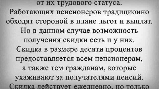 Акция Льгота и Скидка Пенсионерам в Ноябре! Российским пенсионерам рассказали о новой льготе, получить которую сможет каждый обладатель пенсии. Приятная возможность будет предоставлена всем получателям пенсии. И для этого понадобится предоставить официальный документ пенсионера. Новую возможность пенсионерам с недавнего времени начали предоставлять популярные сети магазинов. Супермаркеты начали оформлять для пожилых граждан скидки на покупки, за счет чего пенсионеры могут значительно сэкономить во время походов за продуктами. Например, в сети универсамов «Магнит» скидку на товары могут получить все пенсионеры, вне зависимости от их трудового статуса. Работающих пенсионеров традиционно обходят стороной в плане льгот и выплат. Но в данном случае возможность получения скидки есть и у них. Скидка в размере десяти процентов предоставляется всем пенсионерам, а также тем гражданам, которые ухаживают за получателями пенсий. Скидка действует ежедневно, но только в определенные часы, чаще всего речь идет о времени до тринадцати часов, а иногда и до четырнадцати. Такая возможность будет доступна гражданам, которые предъявят на кассе пенсионное удостоверение или же справку о назначении пенсии. То есть важно показать официальный документ, подтверждающий пенсию, одного паспорта будет недостаточно. А в случае если речь идет об ухаживающем, должна быть справка об уходе, а также фото пенсионного удостоверения. Заплатить в итоге меньше, пенсионеры смогут при покупке почти всех товаров, за исключением табака или акционной продукции. При этом подобная скидка не будет суммироваться с другими акциями, которые действуют в данный момент в магазине. Подобные акции и льготы периодически проводят многие магазины и не только, ставьте лайк если хотите узнать больше об этом.
