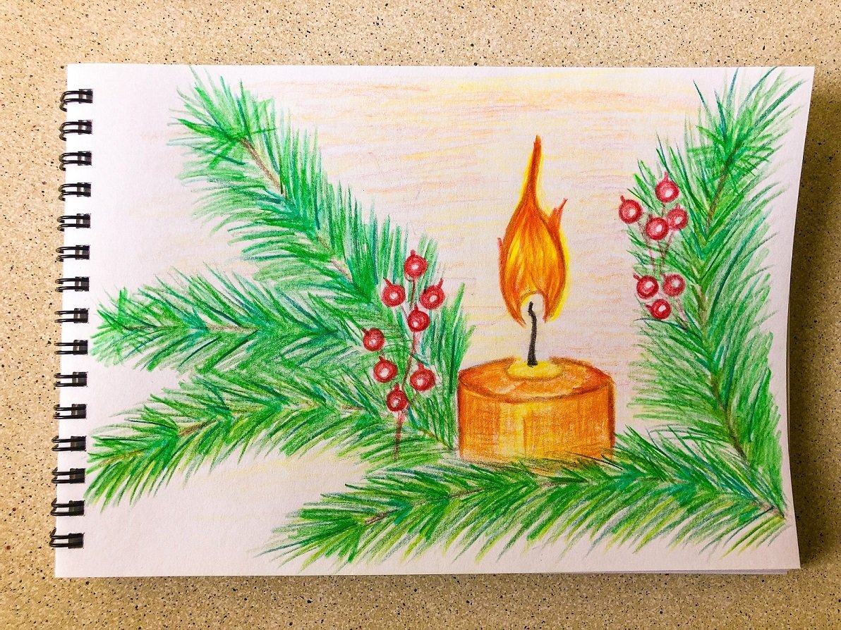 КАК НАРИСОВАТЬ СВЕЧУ КАРАНДАШАМИ // НОВЫЙ ГОД // ОТКРЫТКА // РИСОВАНИЕ ДЕТЯМ