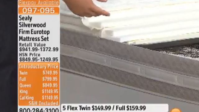 For More Info or to Buy Now: http://www.hsn.com/redirect.aspx?id=il&url=http%3A//www.hsn.com/cnt/prod/default.aspx%3Fpfid%3D158657&afsrc=1&sourceid=youtube&cm_mmc=advsvc*youtube*na*158657 Sealy Posturepedic Silverwood Terrace Firm Eurotop Mattress Set Dive in to the comfort zone. Featuring Titanium DSx — the latest advancement in coil design — this single-coil innerspring mattress... Prices shown on the previously recorded video may not represent the current price. View hsn.com to view the current selling price. HSN Item #158657