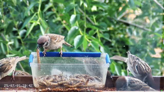 Воробьи в кормушке -