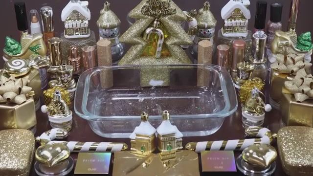 «Золотое Рождество» — смешиваем «золотой» макияж, материалы и блёстки в слайм! Увлекательное видео.