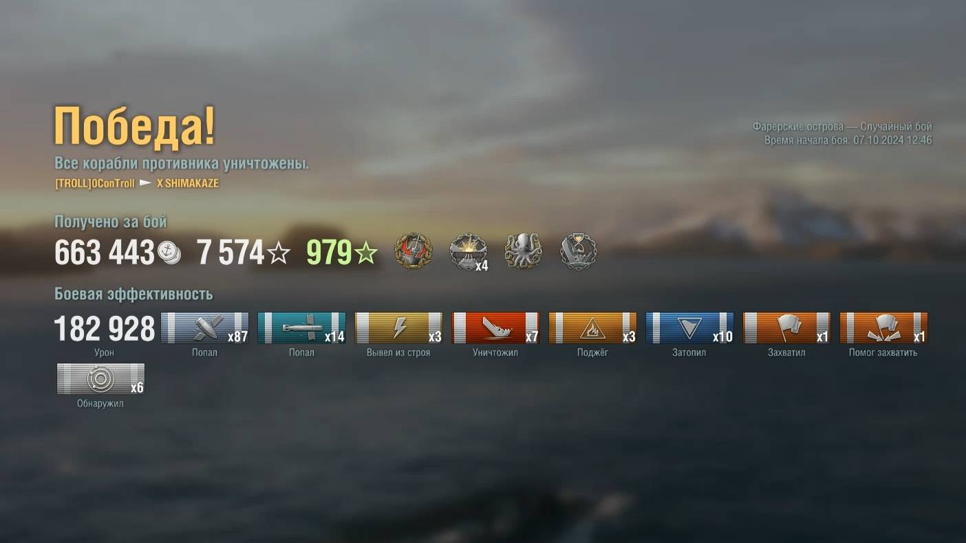 Эсминец Shimakaze : +182к урона 7 фрагов на карте Фарерские острова - World of Warships