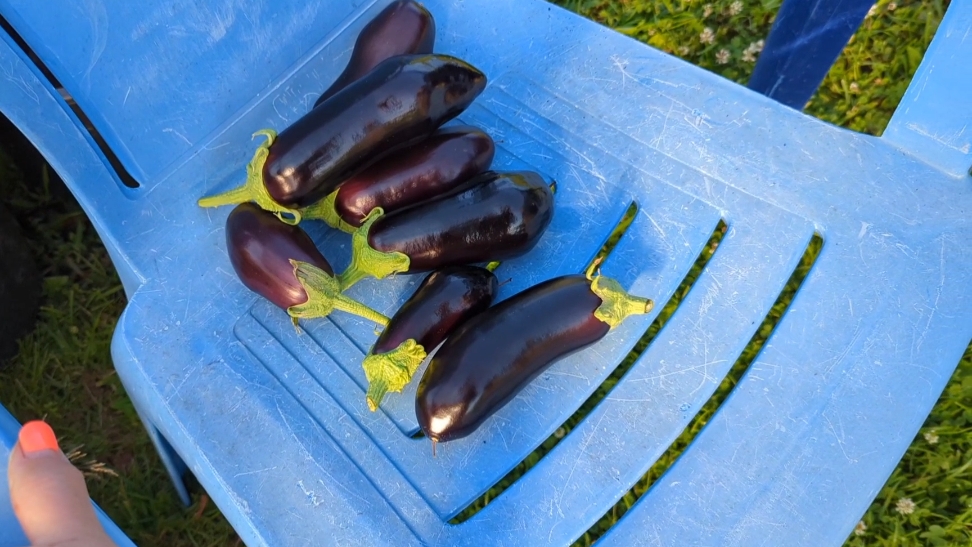 06-08-2025.Дача.Срезала первые баклажаны.Пересаживаю виноград😉