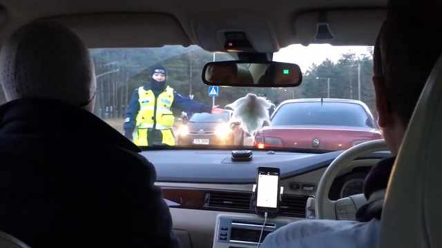 Кто не понял, в трубку дунул пассажир, так как машина с правым рулем и полицейский это не учёл.