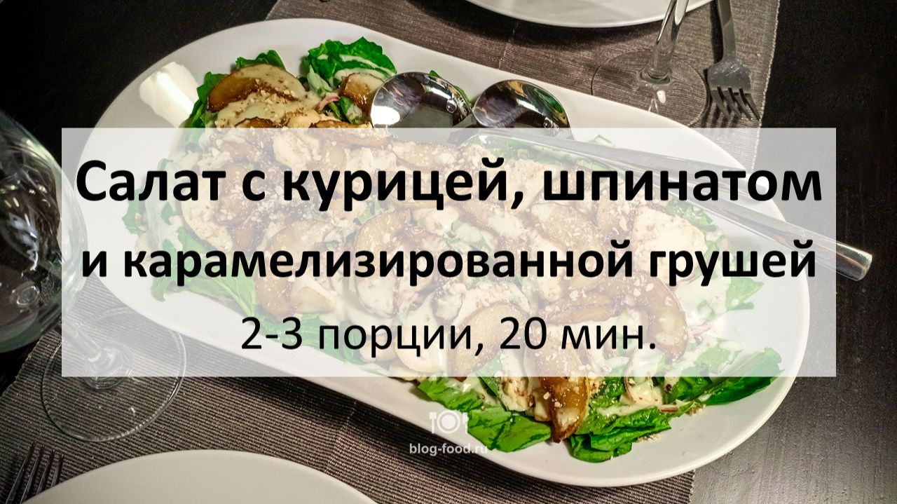 Cалат с курицей, шпинатом и карамелизированной грушей