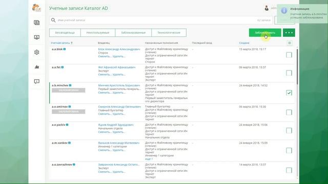 8.0 Управление УЗ пользователей в ИС
