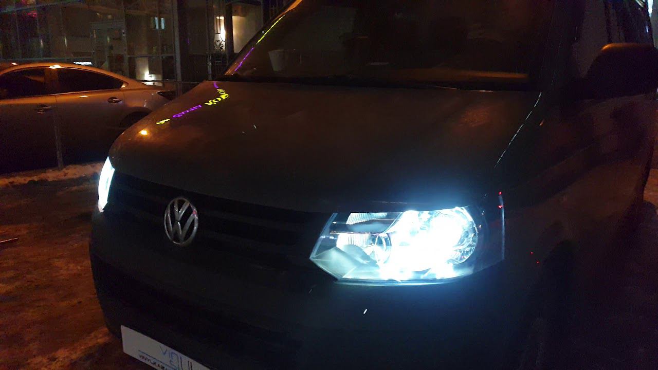 Volkswagen Transporter - заменили обычные галогеновые лампы на светодиодные bi-led модули