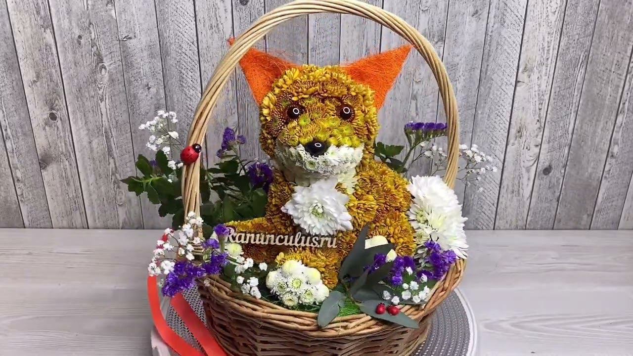 Фигурка лисички, изготовленная из живых цветов. Цветы в виде животных https://ranunculus.ru/igrushki-iz-tsvetov/zhivotnye-iz-tsvetov/ Сайт https://ranunculus.ru Instagram - https://www.instagram.com/ranunculusofficial/