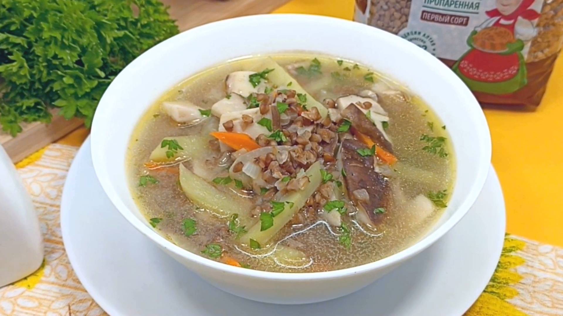 Суп с гречкой и грибами