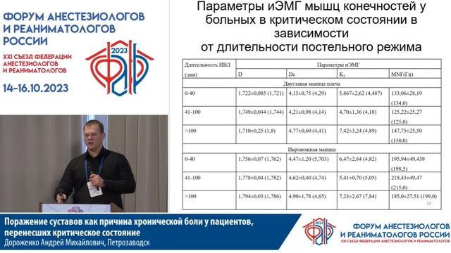Хрон боль суставов после ОРИТ ДороженкоАМ Съезд ФАРР 2023