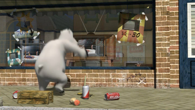 Даже за таким мирным занятием как просмотр телевизора белый медвежонок умудряется попасть в передрягу!