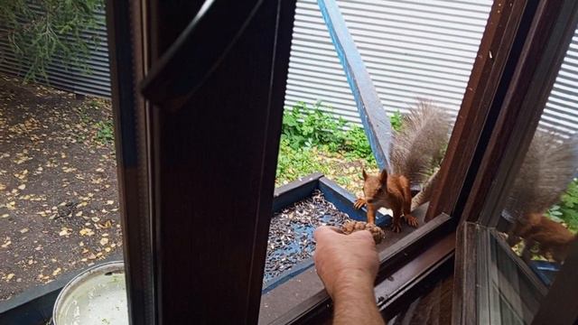 кормим белок с утра.