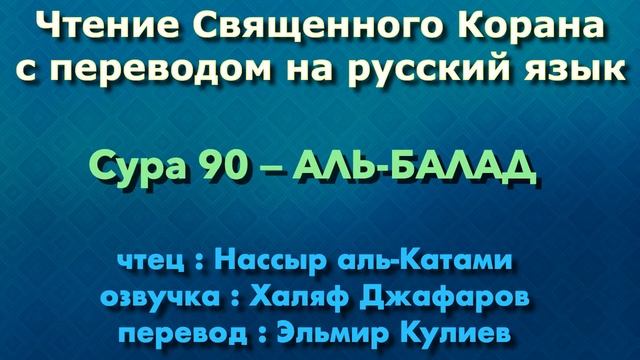 Кира'ат/Чтение с озвучкой Корана Чтец: Насир аль-Катами Озвучка: Халяф Джафаров Перевод: Эльмир Кулиев Источник YouTube канал: " Священный Коран "