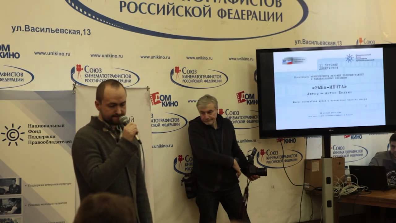 Презентация проекта полнометражного фильма Антона Бильжо "Рыба-мечта" в рамках II питчинга дебютантов. 28 января 2014 г. Дом кино. Организаторы питчинга- Молодежный центр Союза кинематографистов России и Национальный фонд поддержки правообладателей. www.moviestart.ru