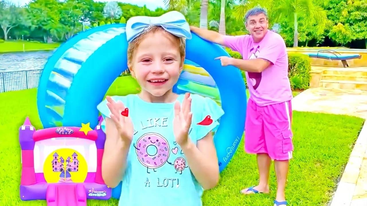 Настя и папа играют в семейные игры для детей на улице. Веселые истории для детей