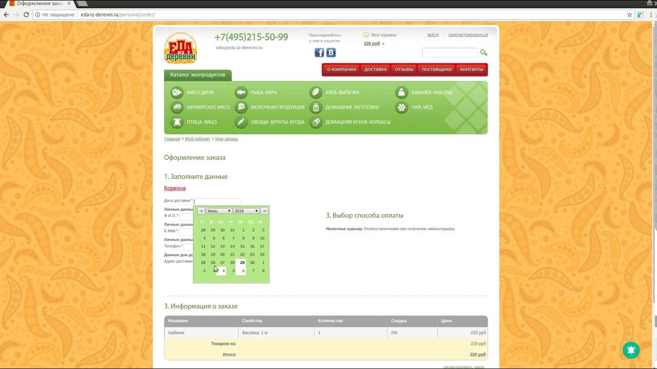 выбор даты доставки еда из деревни