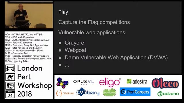 Colin Newell speaking at the London Perl Workshop 2018. https://act.yapc.eu/lpw2018/talk/7559 How we do you educate yourself as a developer about security? Security encompasses so many things, but from a developers point of view writing robust solid code should mostly be a simple thing. Assuming you’re not designing systems, writing secure code shouldn’t be that difficult. How do we make the problem less abstract and more understandable in practice.