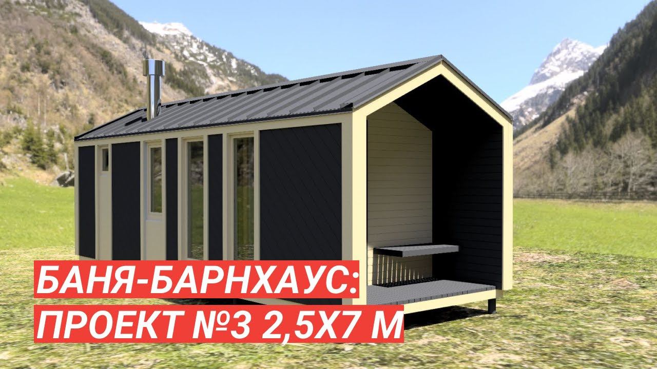 Каркасная баня БАРНХАУС: проект №3 размером 2,5 на 7 метров