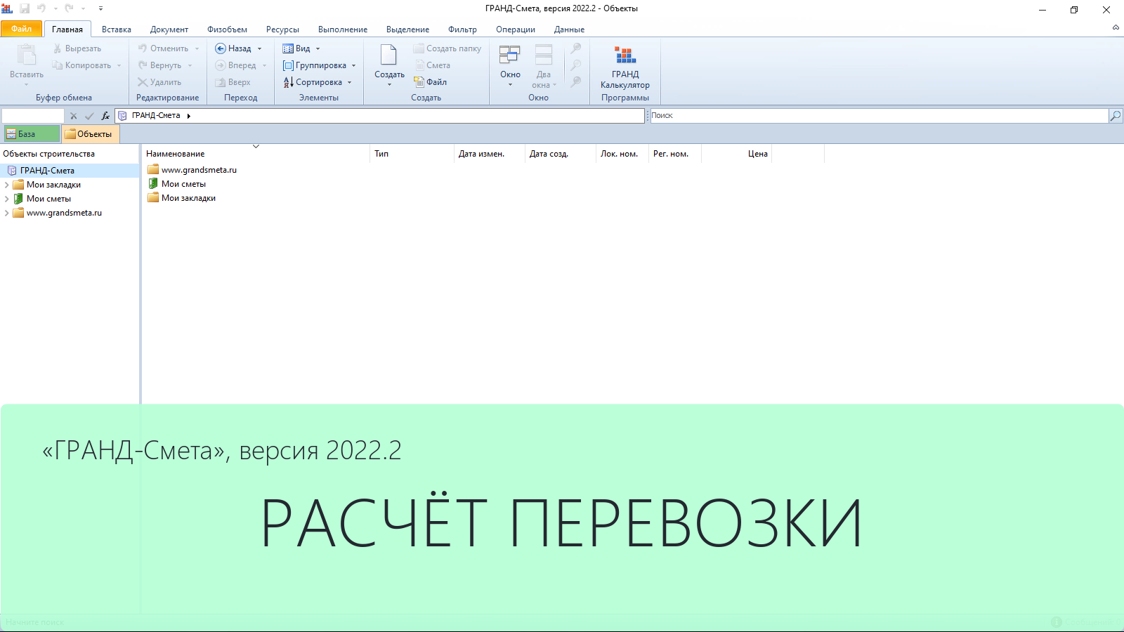 ГРАНД-Смета 2022.2 Расчёт перевозки