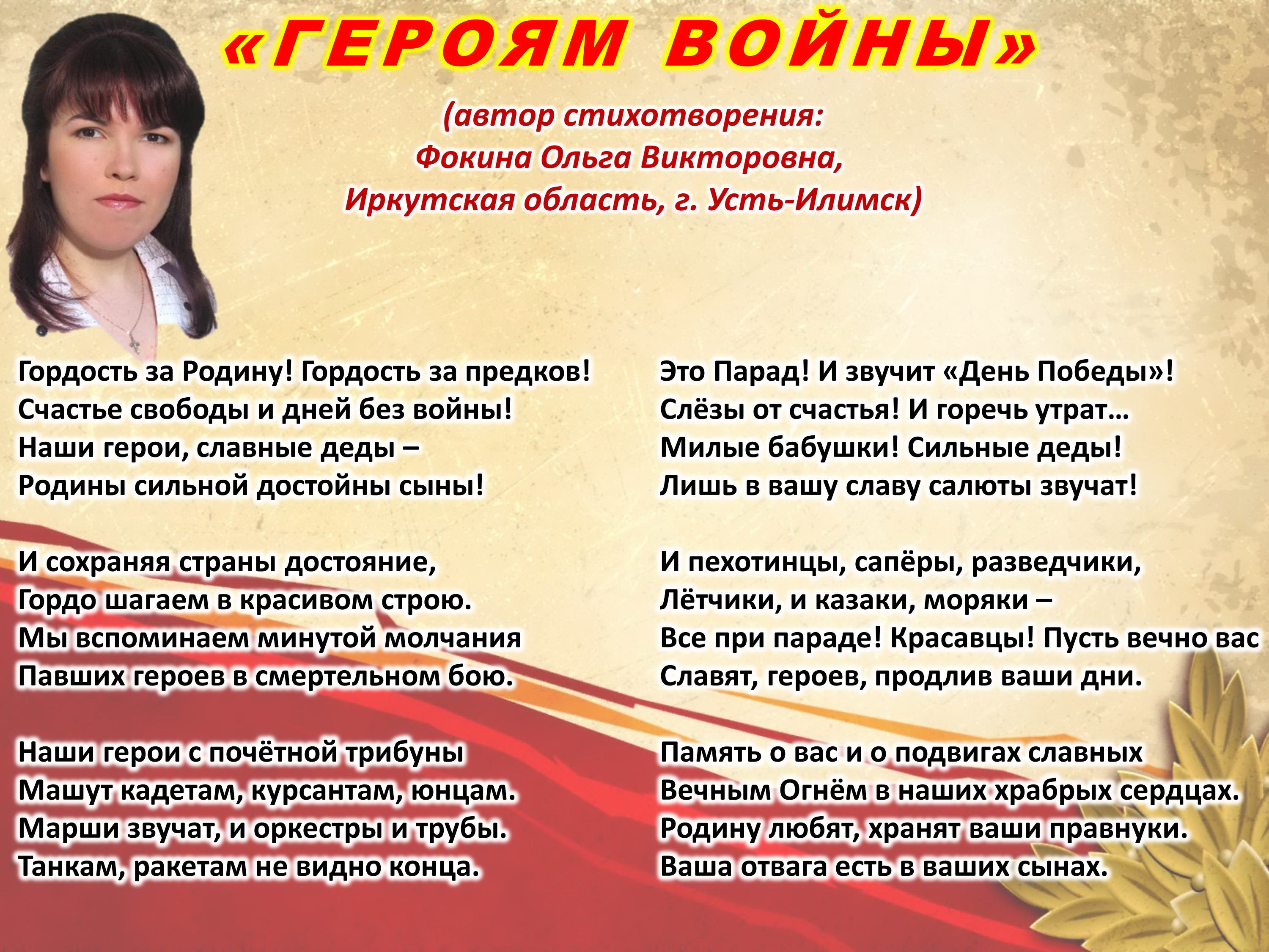 Ольга Фокина (Усть-Илимск) - ГЕРОЯМ ВОЙНЫ