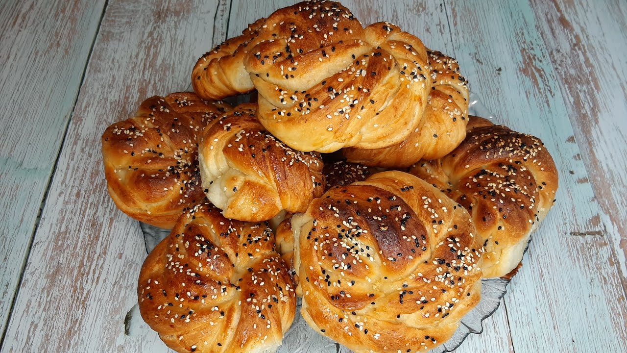 Для теста; мука 1кг. яйца 2шт. соль 10гр сахар 90г. дрожжи сухие 10гр. свежие 32-35гр. вода 240мл. молоко 240мл. масло растительное 150мл. 2 этап, подготовка теста: масло сливочное 100-120гр. яйцо для смазывания 1 шт. кунжут 1ст.л. Приятного аппетита.