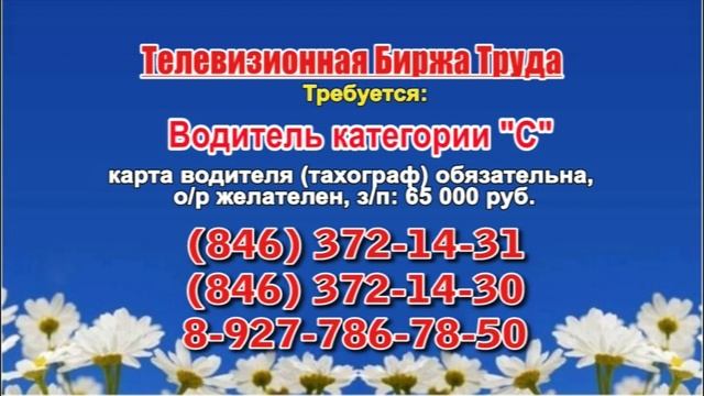 Вакансии и телефоны прямых работодателей в специализированной программе по трудоустройству "Телевизионная Биржа Труда" - г.САМАРА т/к ТВ-ЦЕНТР