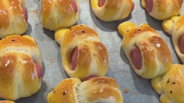 Булочки с сосиской в форме зайчика! Необычно мило! Пышные, мягкие и очень вкусные!