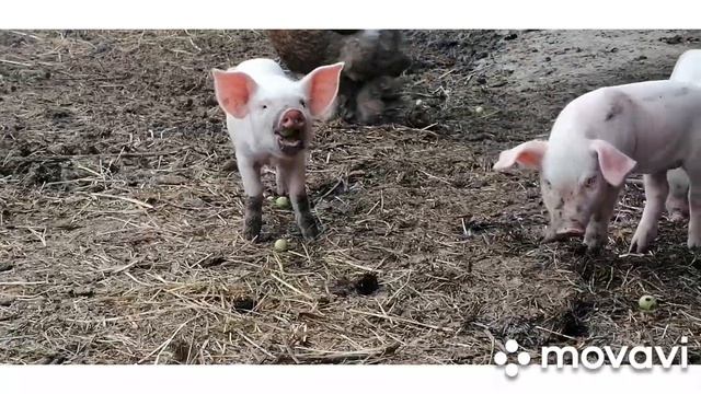 Поросята на воле. Что они творят!? Кормлю их яблочками. Маленькие поросята сбежали от свинки