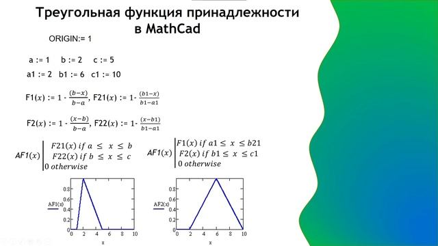 MathCad: нечеткие множества в табличной, аналитической или графической формах