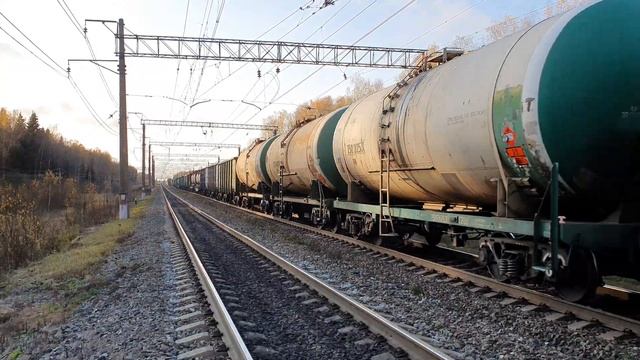 спасибо приветливой бригаде, они знают, что 2ЭС6 на БМО сейчас интересно 25 октября 2020 года в 15:24 перегон Усады-Детково БМО Московская железная дорога 2ES6-823 + 814 and TEM14-0005 at BMO with a freight train at the former Povadino station thanks to the friendly team, they know that 2ES6 at BMO is interesting now October 25, 2020 at 15:24 section Usady-Detkovo BMO Moscowskaya railway