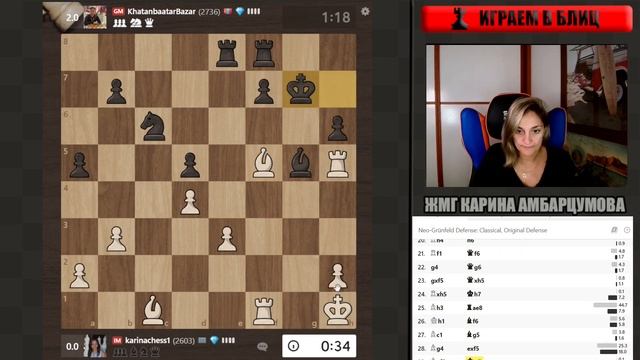 Рубрика: игровое обучение или учимся на своих ошибках. Блиц матч против гроссмейстера со множеством перипетий. Обучающее сообщество: https://boosty.to/karinachess Поддержать канал: https://www.donationalerts.com/r/karinachess1 Подписаться на мой канал: https://www.youtube.com/channel/UChor8u_hhgrjX2lt0QLzZHA?sub_confirmation=1 Обучающий курс "Пешечные структуры" http://bit.do/pawns-structures Рада приветствовать Вас на канале женского международного гроссмейстера, международного мастера Карины Амбарцумовой! Я - профессиональная шахматистка и тренер. Здесь вы сможете найти обучающие видеоуроки по шахматам, комментарии турниров, стримы моей игры в блиц шахматы. Подписывайтесь на мои странички в соц.сетях: ВКонтакте: https://vk.com/karinachessclub Telegram: https://t.me/karinachess Instagram: https://www.instagram.com/1karinala7/ Twitch: https://www.twitch.tv/karinachess1 Почта для связи: karinachess@mail.ru Мой сайт: http://chesscoach.ru/ #шахматы #КаринаАмбарцумова #урокишахмат