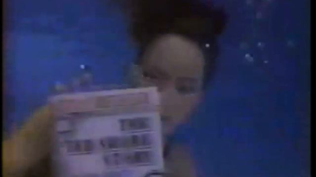 Девушка под водой в ночном бассейне.