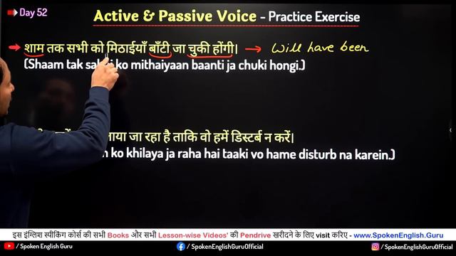 English Speaking Course Day 52 में आज हम Passive Voice के वाक्यों की Practice करेंगे। Practice Exercises Book (on Amazon): https://amzn.to/3UxUF35 Practice Exercises Book (on Flipkart): https://bit.ly/pracbook वेबसाइट: https://www.spokenenglish.guru/ 90 Days इंग्लिश स्पीकिग कोर्स किट (सभी Books और Lesson-wise लैक्चर्स पैन्ड्राइव): https://bit.ly/gurukit सभी Books की PDF eBooks का सैट: https://bit.ly/eBooksCombo 90 Days ऑनलाइन इंग्लिश स्पीकिग कोर्स: https://bit.ly/90guru 6 months ऑनलाइन कम्प्यूटर कोर्स (ISO Certificate के साथ): https://bit.ly/segcc 6 months ऑनलाइन ब्लॉगिंग कोर्स (FREE Tech. Support के साथ): https://bit.ly/blogc12 FB: https://bit.ly/seg_fb Instagram: https://bit.ly/3wzBLy4 Android App: https://bit.ly/engmuni मेरे सभी सब्सक्राइबर्स के लिए FREE Study Material: 3000+ Daily Use Sentences: https://www.spokenenglish.guru/category/daily-use-english-sentences/ 1000+ A-Z Vocabulary: https://www.spokenenglish.guru/category/vocabulary-and-pronunciation/ 100+ Conversation Exercises: https://www.spokenenglish.guru/category/conversations/ 60+ Translation Exercises: https://www.spokenenglish.guru/category/translation-exercises/ Practice Exercises: https://www.spokenenglish.guru/category/spoken-english-guru-practice-exercises/ English Quizzes: https://www.spokenenglish.guru/category/english-quizzes/ Interview Q&A: https://www.spokenenglish.guru/category/interview-questions-and-answers/ Parts of Speech: https://www.spokenenglish.guru/category/parts-of-speech/ Essays: https://www.spokenenglish.guru/category/essay-writing/ Speech: https://www.spokenenglish.guru/category/speech/ Trending Topics: Tenses: https://www.spokenenglish.guru/tense-definition-rules-charts/ Verbs: https://www.spokenenglish.guru/all-verbs-in-english-grammar/ Prepositions: https://www.spokenenglish.guru/prepositions/ Punctuation Marks: https://www.spokenenglish.guru/14-punctuation-marks-in-english/ Active-Passive Voice: https://www.spokenenglish.guru/active-and-passive-voice-rules-tricks-charts-exercises-examples-pdf/ Direct-Indirect Narration: https://www.spokenenglish.guru/direct-and-indirect-speech/ #spokenenglishguru