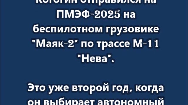 Когогин отправился на ПМЭФ-2025 на беспилотном грузовике