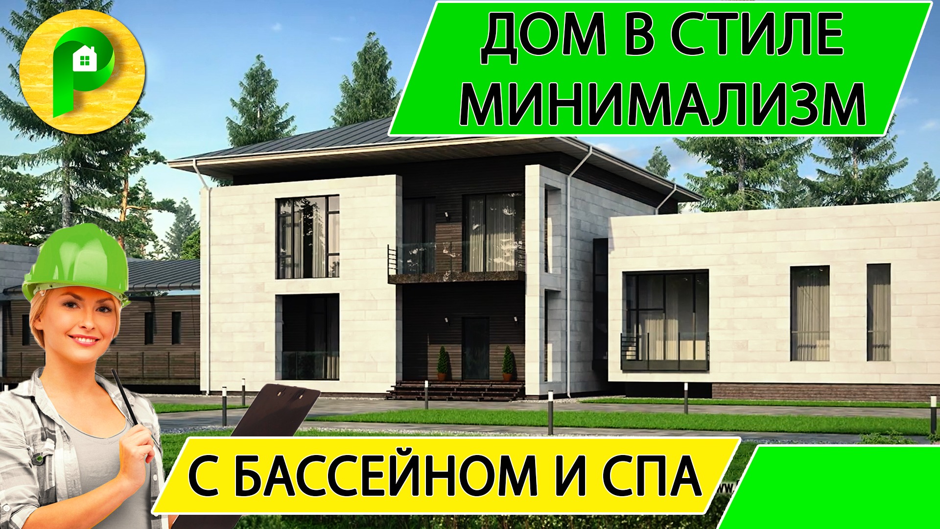 Проект дома в стиле минимализм с террасой бассейном и комнатой охраны 450 кв Ремстройсервис М 227