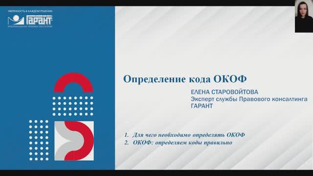 Сегодня стратегическим направлением государства является управление экономикой на основе данных в цифровой форме. Поэтому остро встает вопрос о правильном выборе кода ОКОФ, который является ключевым реквизитом для целей учета основных средств. Подробнее о том, для чего и как определять код ОКОФ, смотрите в видеоматериале Елены Старовойтовой – эксперта-аналитика направления "Бюджетная сфера" компании ГАРАНТ. __________ ТАЙМКОДЫ: 00:00 В этом видео 00:27 Для чего необходимо определять код ОКОФ 01:07 Принципы гармонизации ОКОФ и ОКПД2 01:36 Определение кода ОКОФ при наличии кода производителя 02:56 Определение кода ОКОФ при изменении кода ОКПД2 на момент принятия к учету 04:32 Определение кода ОКОФ при приобретении импортного товара с указанием кода ТН ВЭД 05:15 Неоднозначные ситуации при определении кода ОКОФ 08:31 Определение кода ОКОФ при создании единого объекта основного средства из приобретенных отдельно товаров 09:59 Подводим итоги __________ Получить бесплатный доступ к системе ГАРАНТ https://garant.pravovest.ru/?openModalDemo=true