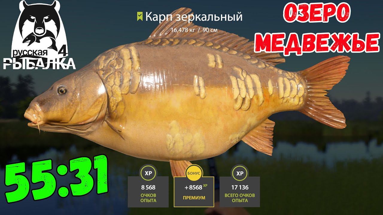ХОРОШИЙ КЛЕВ ЧЕРНОГО АМУРА И КАРПОВ НА МЕДВЕЖЬЕМ ОЗЕРЕ В РУССКОЙ РЫБАЛКЕ 4 РР4