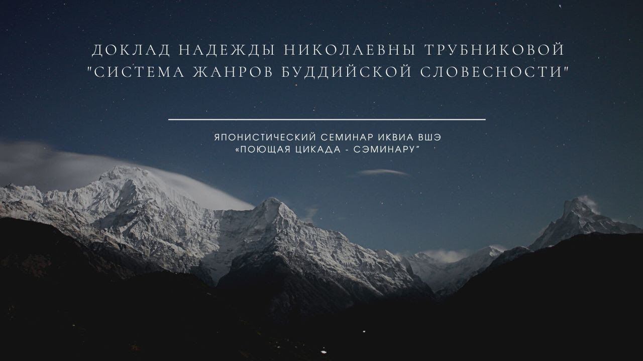 Запись Японистического семинара ИКВИА ВШЭ «Поющая цикада - Сэминару” от 25.05.2021 Лекция доктора исторических наук Н.Трубниковой "Система жанров буддийской словесности" В начале семинара Н.Н. Трубникова рассказала о недавно вышедшей книге "Миры, чтоб жить. К 50-летию Надежды Трубниковой". В сборник вошли статьи, переводы, рассказы и повести учителей, учеников и друзей Н.Н. Трубниковой. В докладе "Система жанров буддийской словесности" на обсуждение коллег было представлено исследование "Бодхисаттва Каннон в системе японской буддийской словесности". Исследование включает в себя переводы текстов, имеющих то или иное отношение к почитанию одного из наиболее чтимых и любимых буддийских персонажей бодхисаттвы Каннон. Сравнивания разные тексты на одну и ту же тему, автор выявляет особенности жанров буддийской словесности и ставит вопрос о том, какие бывают жанры и где проходят условные границы между ними. 00:06 Введение. 01:42 Доклад Н.Н.Трубниковой "Система жанров буддийской словесности" 43:54 Обсуждение и комментарии.