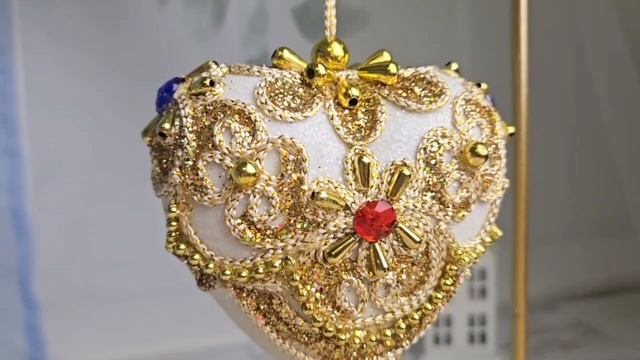 Ёлочное украшение-сердце БЕРЗЭ - ДВОРЦОВАЯ РОСКОШЬ, пластик, текстиль, стразы, бусины, 9 см, S4442-2