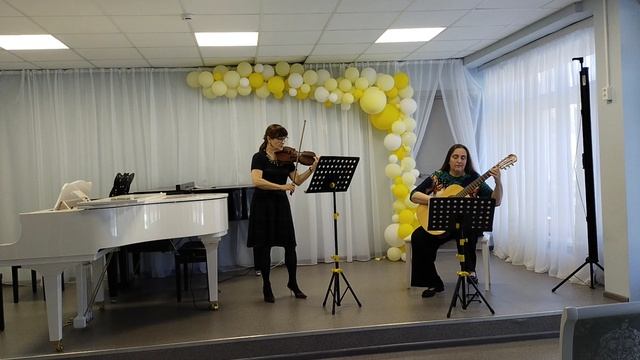 Дуэт преподавателей Линдовской детской школы искусств: Кашаева Галина Юрьевна - скрипка, Хохрина Анна Павловна - гитара.