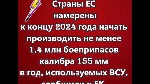Страны ЕС намерены к концу 2024 года начать производить не менее 1,4 млн боеприпасов