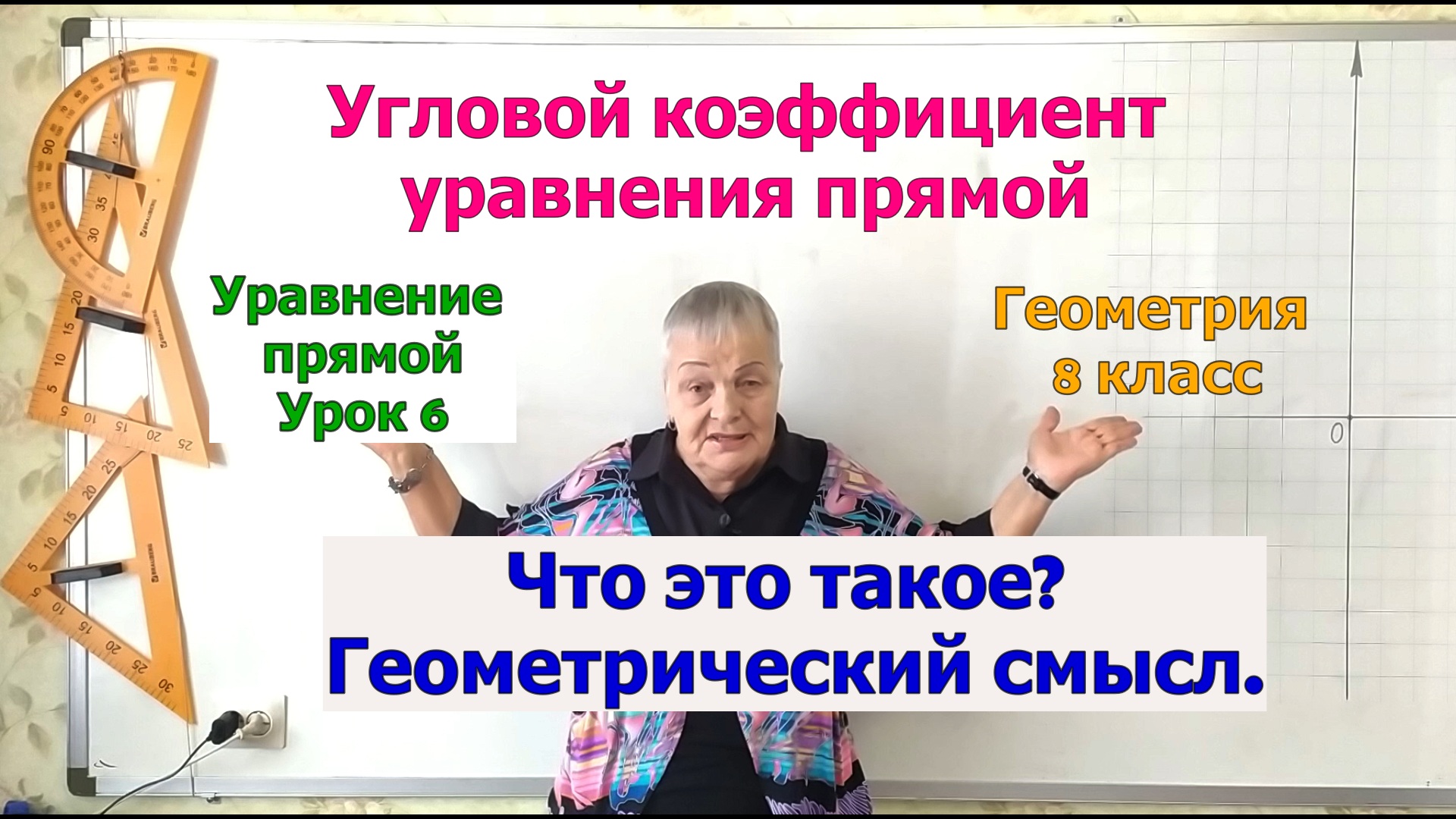 Геометрия 8-9 класс. Что такое угловой коэффициент в уравнении прямой? В чём заключается геометрический смысл углового коэффициента? Сегодня мы ответим на эти вопросы. Мы покажем Вам, как получается угловой коэффициент в уравнении прямой. Напомним Вам роль углового коэффициента в построении графика линейной функции. Подробно объясним Вам, в чём же заключается геометрический смысл углового коэффициента. Подробный план урока и ссылки на предыдущие уроки Вы можете найти в описании под видео. 00:00 Начало видео. 00:22 Что такое угловой коффициент, и как он получается? 03:01 Вспомним, что мы уже знаем об угловом коффициенте. 03:54 Геометрический смысл углового коффициента. Чему равен k? 06:36 Где же тут геометрический смысл? #Геометрия8класс #уравнениепрямой #угловойкоэффициентвуравнениипрямой8класс #геометрическийсмыслугловогокоэффициента #угловойкоэффициентвуравнениипрямой #МатематикаОтБаканчиковой геометрия 8 9 класс, уравнение прямой, угловой коэффициент в уравнении прямой 8 класс, геометрический смысл углового коэффициента, угловой коэффициент в уравнении прямой
