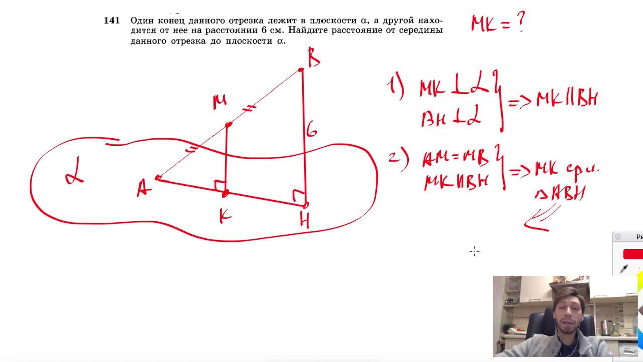 №141. Один конец данного отрезка лежит в плоскости ос, а другой находится от нее на расстоянии 6 см. Найдите расстояние от середины данного отрезка до плоскости а. Поддержать канал рублём - 5469400944002125 (Сбербанк) Мой второй канал для подготовки к ЕГЭ и ОГЭ - https://www.youtube.com/ЕвгенийСумин Инстаграм - https://www.instagram.com/EGE_OGE.math Личный инстаграм - https://www.instagram.com/ee_sumin VK - https://vk.com/evgeniysumin FB - https://www.facebook.com/EvgeniySumin