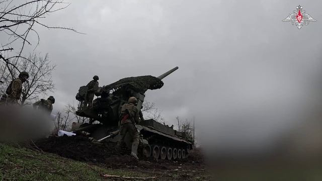 💥 САУ 2С7М «Малка» уничтожила опорный пункт ВСУ на Красноармейском направлении. Это помогло нашим штурмовикам продвинуться к Красноармейску. 🔹 Минобороны России