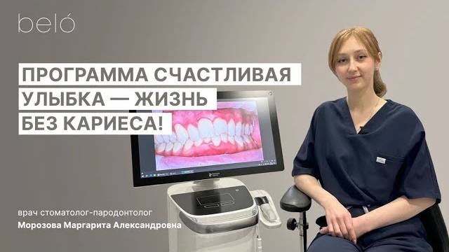 Профессиональная гигиена - процедура, которая необходима всем для поддержания здоровья полости рта✨ Поэтому мы разработали уникальную программу «Счастливая улыбка» - персональный годовой курс профессиональной гигиены и РЕМ-терапии, которая также включает обучение правильному уходу за зубами и КТ-диагностику здоровья зубов с применением искусственного интеллекта. Уникальность программы «Счастливая улыбка» - в комплексном подходе при профилактике проблем полости рта. Индивидуальный план предупреждает заболевания как зубов, так и десен. Длительность программы составляет 1 год. ❗️Мы считаем, что предупредить гораздо проще, чем лечить. А если мы обнаружим кариес в первый год подключения к программе “Счастливая улыбка”, то вылечим зуб со скидкой 30%. Во второй год использования программы - 50%. А на третий год участия в “Счастливой улыбке” - лечение новых кариесов за наш счет! Также при подключении к программе Вы автоматически получаете высокие гарантии: Керамические коронки - 7 лет Импланты - 100 лет Пломба на коренные зубы - 5 лет Пломба на молочные зубы - гарантия до смены зуба на постоянный! И наивысший статус в программе привилегий - максимальный кэшбэк 10% от стоимости оплаты медицинских услуг в belo, который можно использовать при последующей оплате. О том как проходит процедура рассказывает стоматолог-пародонтолог клиники belo Морозова Маргарита Александровна. Остались вопросы? Просто позвоните по номеру: +7(495)154-9447⠀ г. Одинцово, ул. Говорова 87, 6 этаж