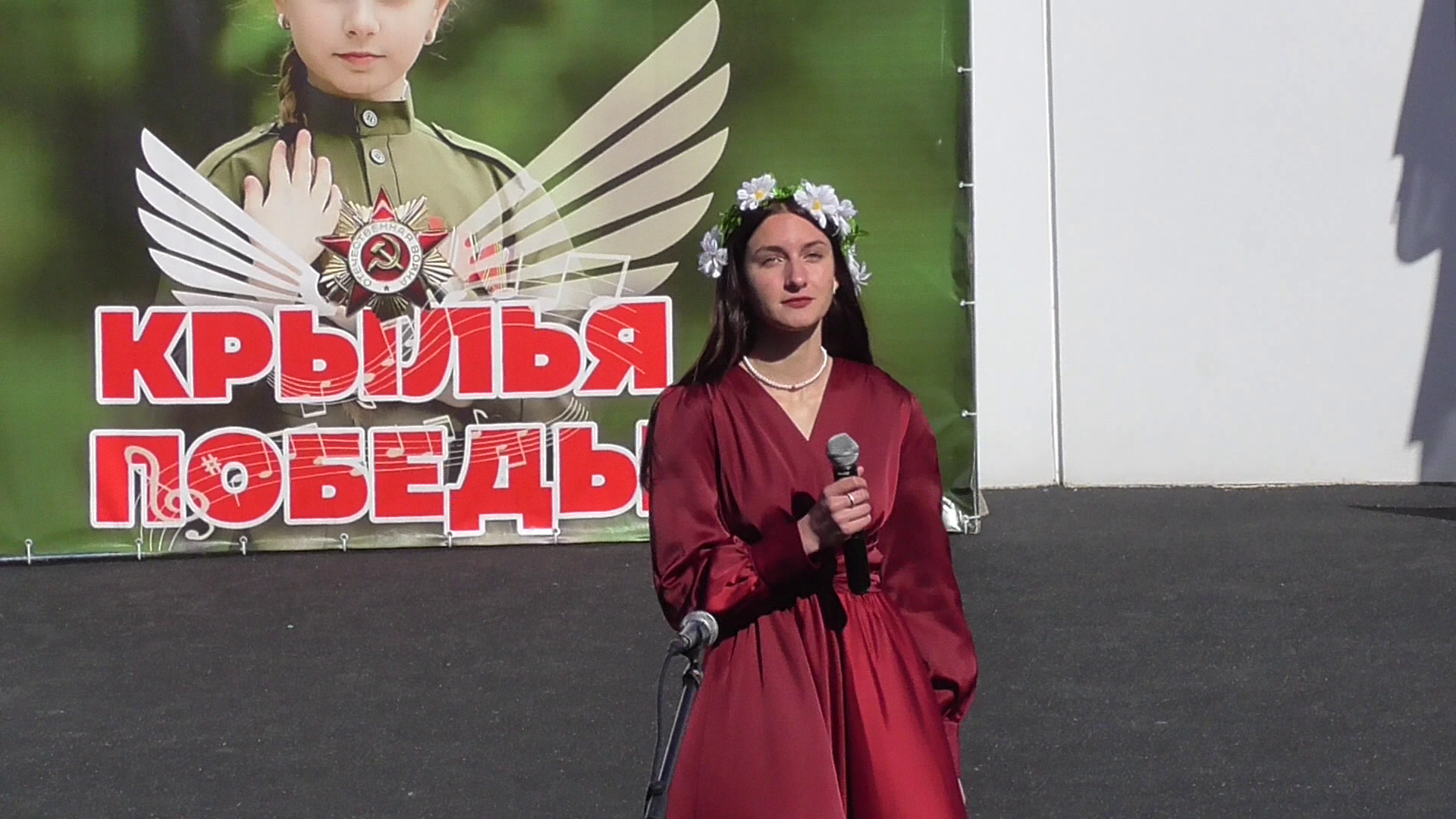 Девушка на празднике Крылья Победы поёт песню, песня: Ой, да не вечер